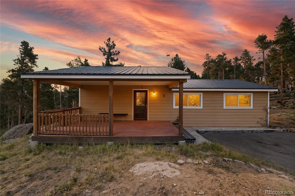 This updated ranch style home features a metal roof, covered front porch, and back porch over looking the fire mitigated back yard. Beautiful mountain views from the kitchen window. The septic was just installed in 2022 with an automatic in line heater to prevent winter freezing (2023). The well pump house has a new whole house water filter (2023) and a new automatic heat trace with a backup preventing winter freezing (2023). Seller has added insulation to the pump house and a thermostatic control for heating in winter. Cabinets, wood floors, and interior paint all new in 2022. New water heater in 2023 and a new refrigerator in 2022. All appliances stay with the house. Close to Wonderview Cafe, 25 minutes to Eldora Ski Resort, 15 minutes from Gross Reservoir, and 1 hour from DIA. This home has easy access to 72 and highway 93.
