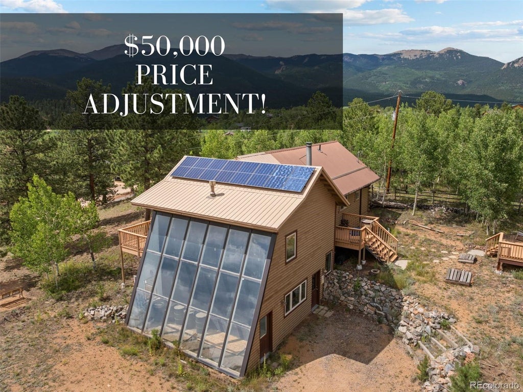 Seller says SELL! VIDEO: https://youtube.com/shorts/3WwQJa0UjvM?si=BL04OfJdR7eHsxLL | This isn't your average cabin - it's a fun mix of vintage character, creative updates, and eco-conscious living tucked into just over an acre of mountain serenity sprinkled with graceful aspen trees. The original cabin welcomes you with a bright, open living room with vaulted ceilings, and a charming kitchen with tongue-and-groove ceilings that adds warmth and character. A custom spiral wood staircase leads to a cozy lofted bedroom. An addition brings in the great room feel, with a spacious dining area, gas fireplace for ambiance, and picture windows that put the surrounding mountain views and fluttering aspens on full display. Downstairs, a generous flex space is currently a home office, but could easily be finished out into a second bedroom, studio, jam room, or guest suite. A full-fledged woodworking shop sits on the property, outfitted and ready to go. The Seller is open to including the contents with the right offer, making this a turnkey dream for any contractor, craftsman, or hands-on creative. This home is as functional as it is funky, featuring an passive-solar Trombe wall that can heat the home using the sun at the flip of a switch (yes, FREE heating!), solar panels to offset your electric bill, and multiple heat sources to keep things toasty all year. Outside, you’ll love the large deck for outdoor living, stargazing, or strumming the guitar beneath the trees. Plus, there’s a full septic system, a private well, and you’re on a county-maintained road with easy year-round access. Property is eligible for State Farm insurance, too! Need to stay connected? Starlink, Rise Broadband, and CenturyLink are ready when you are. Whether you're a first-time buyer, an adventurous spirit, or a tradesman looking for a creative retreat, this one-of-a-kind cabin is a chance to reconnect with nature and live sustainably while you're at it. Home shall be sold AS-IS.