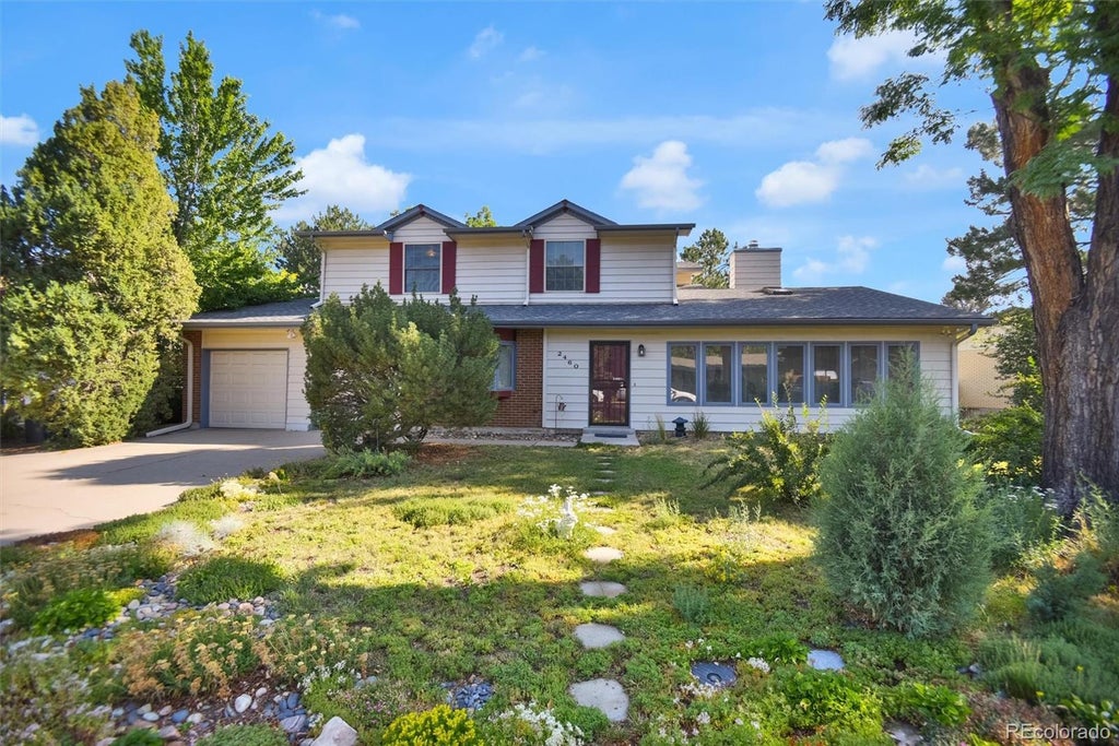 NO HOA!! New class 4 hail resistant roof 9/2025. Full sewer line replacement 8/2025. Complete electric service upgrade 2023. New kitchen flooring, new carpet, new skylights! Immaculately maintained with all service records available for review. In the Cherry Creek School District and just a 5 minute walk from Eastridge Elementary School! Open staircase, a wet bar sink in the living room and windows looking into the sun room. Two sided fireplace warms both the living room and kitchen. Vaulted ceilings and new skylights with remote control sun shades in the living room and kitchen. Step into the kitchen and be amazed by the abundant cabinetry and sprawling granite countertops. New flooring, a down draft stovetop and garden window make this a cheerful and welcoming work space. The kitchen opens to the dining area with oversized slider to the patio. The second fireplace is located in the living room and creates a warm and cozy feel. The main floor bedroom could double as an office space with plenty of room and a bay window. The laundry room doubles as a mud room entered from the garage. The front porch has been closed in to become a sun room with passive heating. Upstairs you'll find the primary suite as well as 4 bright and cheerful bedrooms and a full bath. The basement is partially finished and has a rough-in bath. Add an egress window and you have the makings of a 6th bedroom! A covered back patio overlooks a large yard with natural bushes for added privacy and one large shade tree. Upgraded lawn sprinklers front and back. New carpet, new paint, new kitchen flooring, recently completed electric service upgrade, new skylights, etc., add to the value of this home.