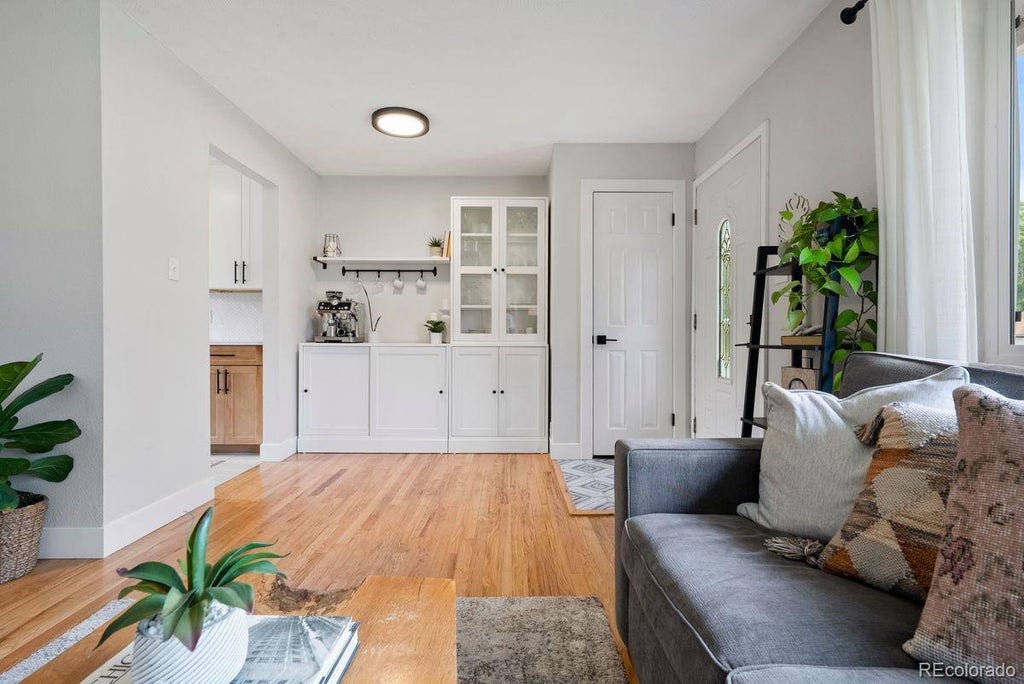 Refined, updated, and quietly positioned in one of Arvada’s most walkable locations, 5336 Johnson Street blends timeless character with modern-day comfort. Set on a private lot with no HOA and just two blocks from the G Line light rail station, this thoughtfully updated brick ranch offers a rare opportunity to live simply and stylishly—minutes from the vibrant heart of Olde Town. A classic brick exterior opens to a light-filled interior grounded in hardwood flooring and clean lines. The open layout invites effortless flow from living to dining to kitchen, while large windows fill the home with natural light. The updated kitchen features quartz countertops, modern cabinetry, and a versatile built-in station—perfect for a coffee bar, cocktail nook, or compact workspace. Every element has been considered to support a minimalist lifestyle without sacrificing warmth or functionality. Three well-sized bedrooms offer flexibility for home office use, guest accommodations, or future needs, while the refreshed full bath is crisp and timeless. Outside, the private backyard provides space to relax or entertain, and a large detached storage shed offers room for outdoor gear, tools, or hobby projects. An attached one-car garage adds even more convenience. Located near award-winning restaurants, local boutiques, and lively community events, this home provides easy access to everything Olde Town has to offer, while also serving as a peaceful retreat. With no HOA, updated finishes, and an unbeatable location, this is Arvada living, simplified.