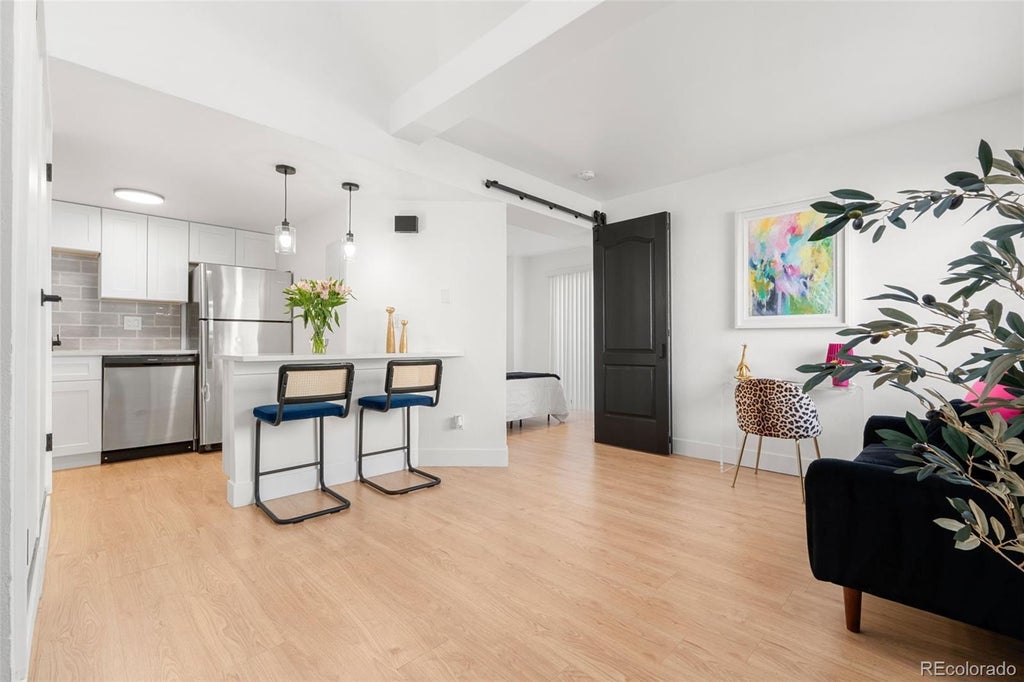 Welcome HOME! BRAND NEW BARN DOOR INSTALLED TO MAKE THE ROOM OFFICIAL AND PRIVATE. Changes the whole concept for the better! Come and take a second look today! This luxury remodeled home is ready for you to move in! Don't miss the opportunity to own a home that has been completely redone with luxury and modern touches. Walk in to vaulted ceilings and a built in kitchen island for convenient seating and an open concept. Did I mention quartz countertops? As you get yourself comfortable walk in to your amazing full bathroom with beautiful tile shower walls. This condo has all the storage room you need, giving you the convenience of your very own laundry closet with already hooked up washer and dryer. Come and cozy up next to the beautiful fireplace, making it an amazing show stopper as you walk in. Come and make thus unique place yours today!