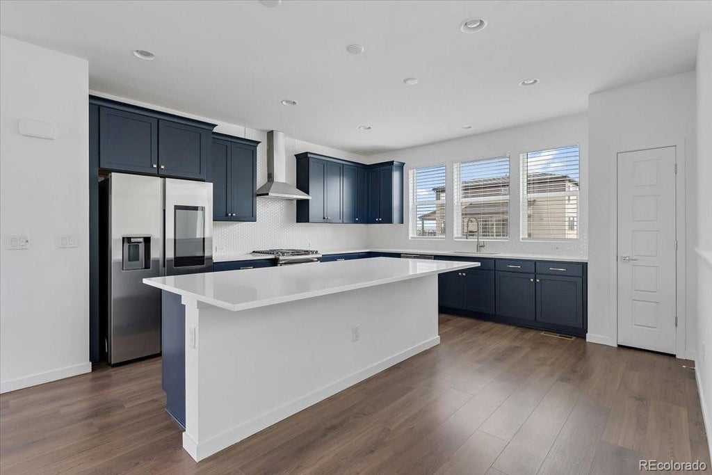 Inside, the three-level layout was designed for how people actually live. The entry level features a welcoming two-story foyer, a full bedroom and bathroom, and a rear-entry garage off the alley. Upstairs, the second floor opens wide with a sleek modern kitchen, a large center island, spacious dining area, and light-filled living room that flow seamlessly together. A covered deck extends off the main living space, giving you an easy way to entertain or just enjoy Colorado evenings outside. A convenient half bath and laundry room round out this level. On the third floor, you’ll find the private primary suite along with two additional bedrooms and a full hall bath.