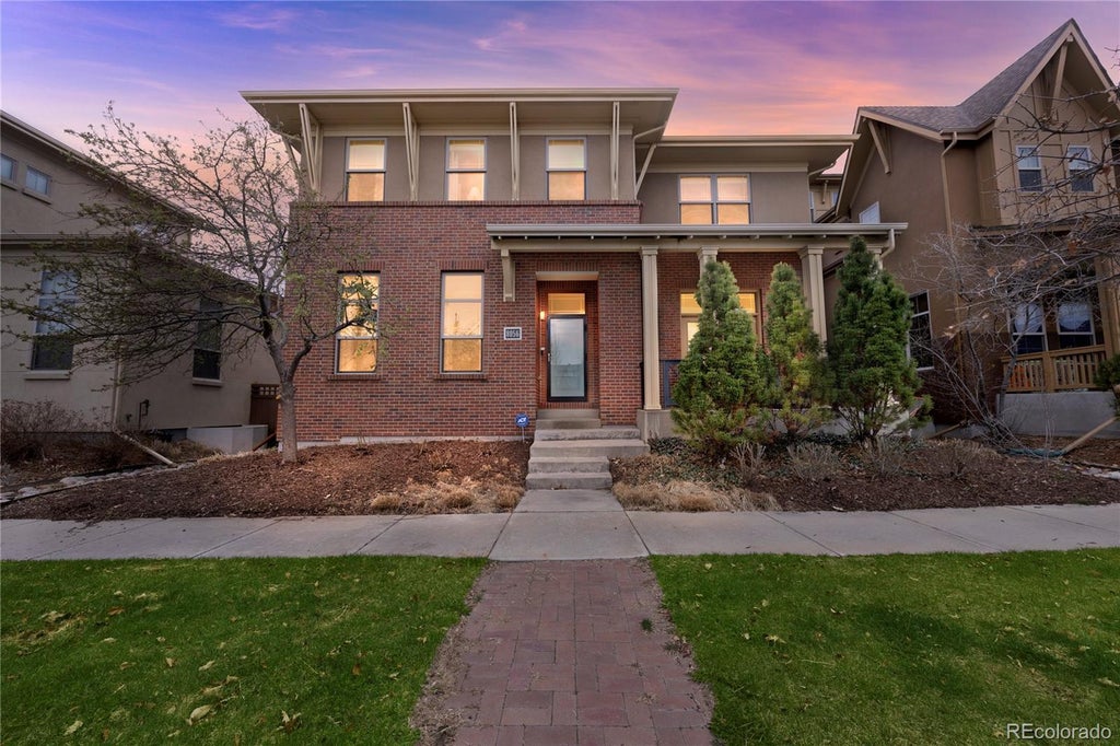 Upon entering this stunning home, you are greeted by a spacious living area with high ceilings and natural light. Your future home offers six bedrooms, five baths, gorgeous hardwood flooring, and 10 foot+ ceilings throughout. The open-concept design seamlessly integrates the living, dining, and kitchen areas, creating an ideal space for entertaining family and friends. The main level’s gourmet kitchen is a chef's delight, featuring a Wolf gas range/double oven, Sub Zero refrigerator, Bosch dishwasher, granite slab countertops, and custom cabinetry. The center island provides a large space for preparing meals and additional seating for entertaining. The family room with a two-story ceiling, custom curtains, and a dual sided gas fireplace is shared with the gourmet kitchen. The office with French doors and the formal dining room face Song Bird Park, a tranquil green area. Upstairs, you are greeted with a cozy loft at the top of the stairs. The expansive master suite is complete with an en-suite bathroom with a deep soaking tub, walk-in duel head shower, and large walk-in closet. Three other spacious bedrooms, two baths, and laundry complete the upper level. The finished lower level offers a large versatile space perfect for game day, movies, and more! A full bathroom and two additional bedrooms make it a perfect space for your guests or extended family. Outside, the front of the home faces a quiet common green area. In the rear, the large dual level patio with a gas fireplace, outdoor kitchen, and private fenced in yard are perfect for outdoor entertaining. Home features owned solar panels and built-in security system. Located in the highly desirable Central Park neighborhood, you will enjoy easy access to world-class dining, shopping, entertainment, and public transportation. Grocery stores, restaurants, Central Park Dog Park and Greenway Belt Park are all within walking distance. The Denver Airport is an easy twenty minute drive.