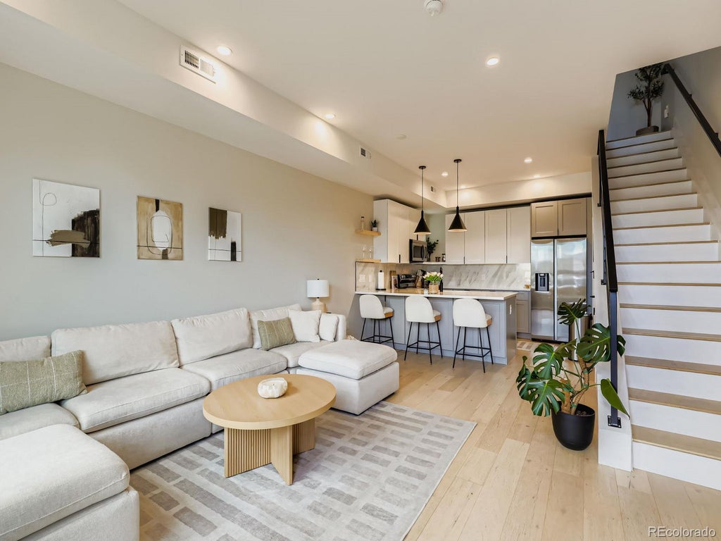 Beautiful Modern Townhouse in Sunnyside! Sun-Filled South facing home offers private fenced in front yard, patio space and gas line for BBQ. Built in 2023 with high quality finishing throughout!! Step inside to high 10ft ceilings, open layout, beautiful white oak hardwood floors, open staircase, 2 tone kitchen with plenty of cabinet space, large countertop with bar seating, quartz countertops and modern fixtures. Upstairs you will find 16ft vaulted ceilings, large 2nd bedroom/ office with charming barn doors, primary bedroom suite with space for a king bed, sun filled with large slider door out to private balcony and double closet, attached bathroom with double vanity, large shower with bench, beautiful modern tile and light fixtures. Amazing value!!!! NO HOA! Only Party wall agreement that includes water, lawn maintenance and snow removal! Typically $100~monthly. Sunnyside at your doorstep with parks, coffee shops and Denver's best restaurants. Located on quiet street with access easy access to anywhere in the city.... minutes to I-70, I-25 and I-76. Seller Financing Available~~ Contact Listing Agent for details.