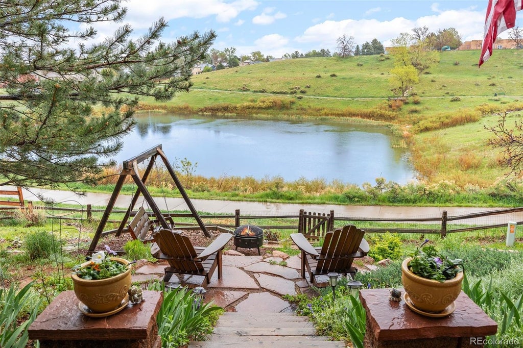 Experience Colorado living at its finest at 7888 Canvasback Circle in beautiful Roxborough Village. Perfectly set in the foothills, this inviting two-story home backs to open space with stunning views of the ponds and westerly mountains. Enjoy nature at every turn—from blue herons and pelicans to deer and foxes—all from your terraced backyard. Step inside to a bright, vaulted interior that blends modern comfort with the home’s natural surroundings. The open layout connects the living room, kitchen, and dining area, ideal for everyday living and entertaining. The kitchen features GE slate appliances, white cabinetry, a large pantry, and access to the TREX deck—perfect for morning coffee or sunset views. The adjoining family room offers a cozy gas fireplace and plenty of natural light. Upstairs, find four spacious bedrooms, including a primary suite with a 5-piece bath, walk-in closet, dual vanity, soaking tub, and new LVT flooring. The vaulted loft, originally designed as a fourth bedroom, provides flexible space for an office, media room, or guest area with scenic pond views. The walkout basement functions as a private guest suite or rec area with a ¾ bath and direct access to the brick patio and backyard. From the back gate, step onto a walking path that connects to the High Line Canal, Chatfield Reservoir, and nearby trails. Arrowhead Golf Club is only a couple minutes away, offering one of Colorado’s most picturesque courses. Updates include: interior paint (2024), primary bath refresh (2023), new furnace (2023), water heater (2018), newer double-pane windows, and upper TREX deck (2015). Close to Roxborough State Park, Deer Creek Canyon, and Waterton Canyon, this home offers the perfect blend of comfort, nature, and Colorado charm. Schedule your private showing today and experience this exceptional Roxborough retreat for yourself!