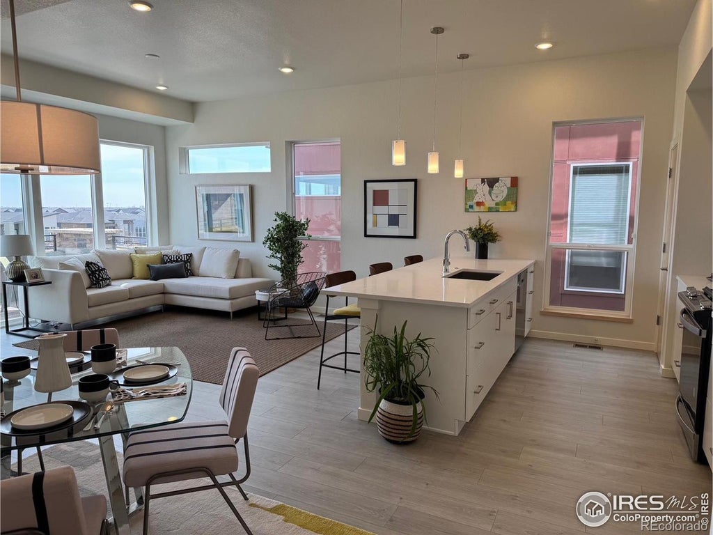 Quick-Move-In opportunity + $25K BUILDER INCENTIVE to apply toward rate buy down, appliances, window coverings, or closing costs! Large windows & complementary exterior textures give this town home a distinct contemporary style. Open living, dining & kitchen design features lots of glass for beautiful natural light. The kitchen is equipped with 30" gas range with microwave above, quartz counter tops, single bowl sink, 5 shelf pantry, maple bench with hooks & Delta faucets. The upper level offers 2 en-suite bedrooms & baths, WIC & convenient laundry closet. Enjoy outdoor deck with gas line & oversized 2-car garage. Standard features include durable EVP flooring on the main level, AC & Navien tankless water heater. Don't miss this opportunity-schedule your tour today and ask about the builder's incentive. Built by long time, award winning local builder. Energy Star certified.