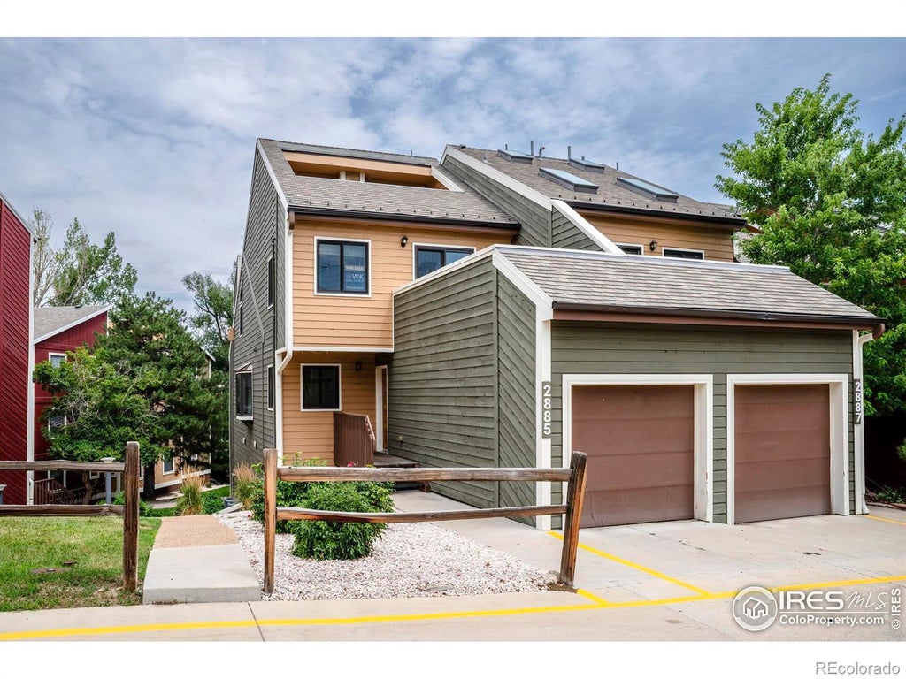 Outstanding location adjacent to CU! Two south-facing roof top decks with flatiron mountain views! End unit townhome style condo with numerous windows, walkout lower level, vaulted ceilings, skylights and open floor plan. Brand new carpet! Property is set back from 28th. Street, and backs to HOA green space. 1 car south facing attached garage. Primary suite with private full bath. Both the living room deck and lower level deck look out over HOA green space. Great separation of living areas over three different levels. Property was completely rebuilt in 2014. New roof in 2020.