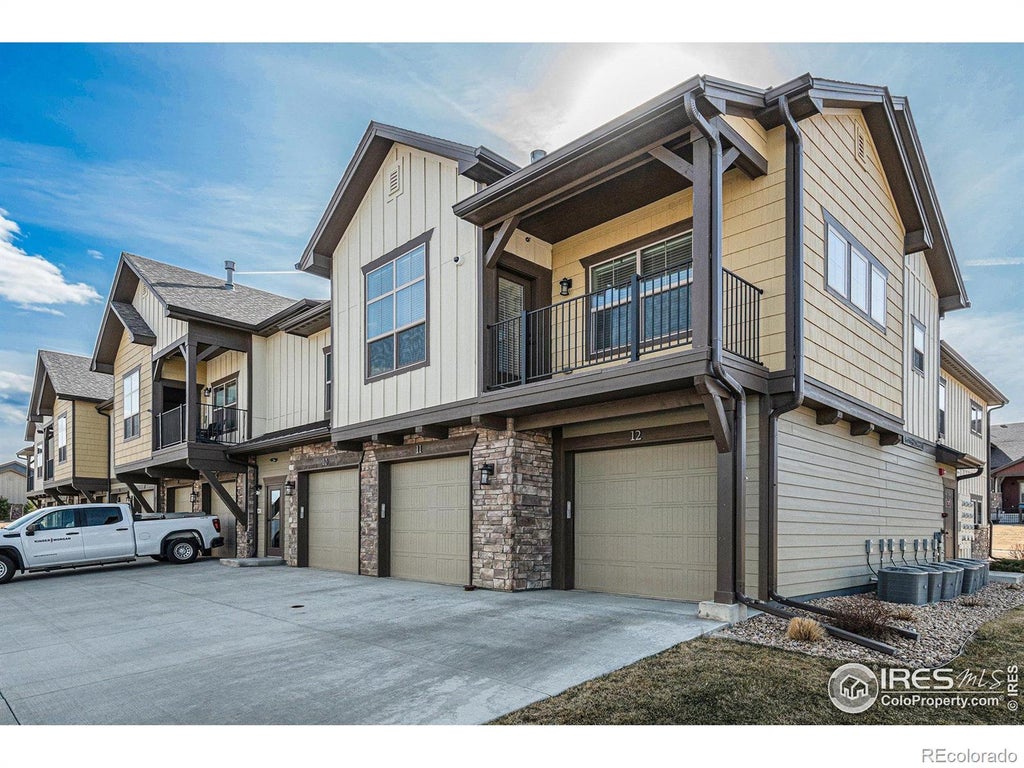 Welcome to this beautiful 2-bedroom, 2-bathroom condo located in the desirable Portofino Flats at La Riva, within Highland Meadows and built by Landmark Homes. The rustic craftsman-style exterior offers great curb appeal, while the secured entry and elevator-served access provide both comfort and convenience.Inside, you'll find premium finishes throughout, including an open-concept kitchen with white cabinetry, quartz countertops, engineered hardwood and tile flooring, stainless steel appliances, a cozy fireplace, and solid core doors. This home also features an oversized attached garage, a high-efficiency furnace, and a tankless water heater.Enjoy an active Colorado lifestyle in this amenity-rich golf course community featuring tennis courts, a swimming pool, and a new clubhouse, plus a resort-style hot tub, BBQ area, and firepit.