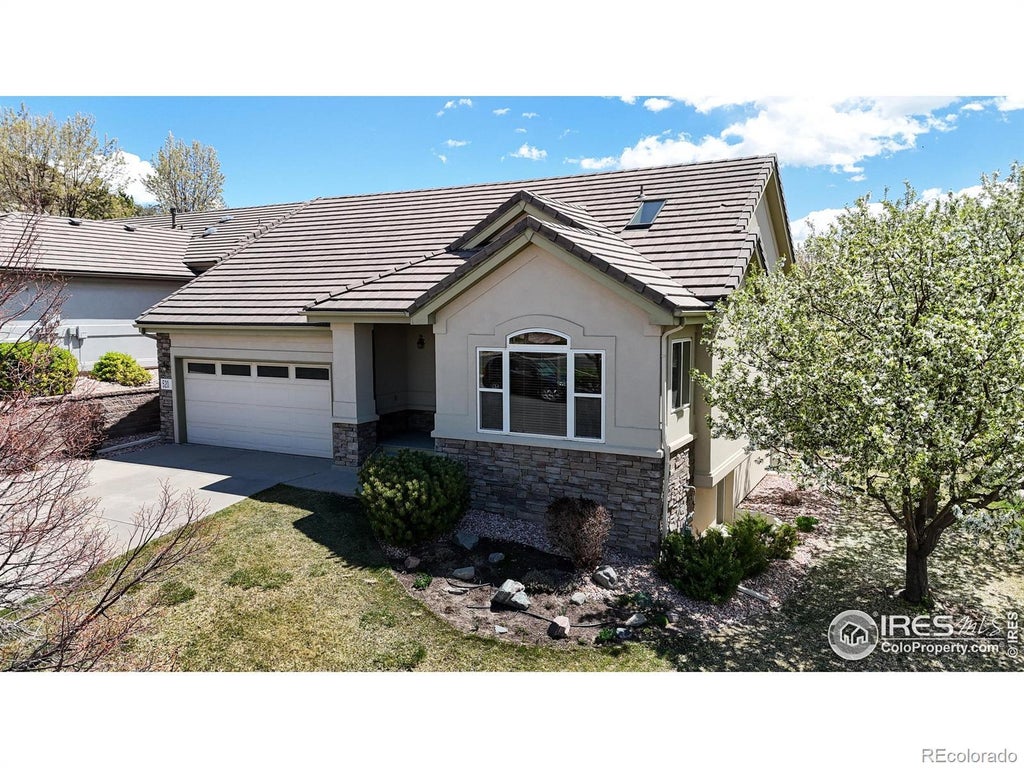 Seller is offering buyer the choice of $10,000 towards closing costs, rate buy down, price reduction, or flooring allowance. Mariana Pointe patio home in the Mariana Butte Golf Course neighborhood. This former model home, located 5 houses from the clubhouse, provides the best of all worlds. HOA takes care of snow removal and lawn care, yet it's a detached ranch plan with 4 bedrooms, 3 bathrooms, and a 2-car garage. Seller offering flooring allowance. Low maintenance stucco exterior and tile roof. Fantastic views of the mountains and views of the Butte from the patio. Great location on a corner and backing to the neighborhood greenbelt. Upgrades include solid granite countertops, a skylight, an island, solid wood floors, and extra built-in cabinets in the kitchen and surround sound throughout. The bright, daylight basement features beautiful built-in cabinets around a stone fireplace, extra cabinets, built-in desk, countertops, and a beverage fridge. The spacious primary bedroom features a door to the deck, a 5-piece bathroom with comfortable soaking tub, engineered wood floor, and a walk-in closet. The garage has an epoxy floor, insulated/finished walls, a work bench and extra cabinets. Furnace and A/C were replaced in last 2 years. This home has been meticulously maintained.