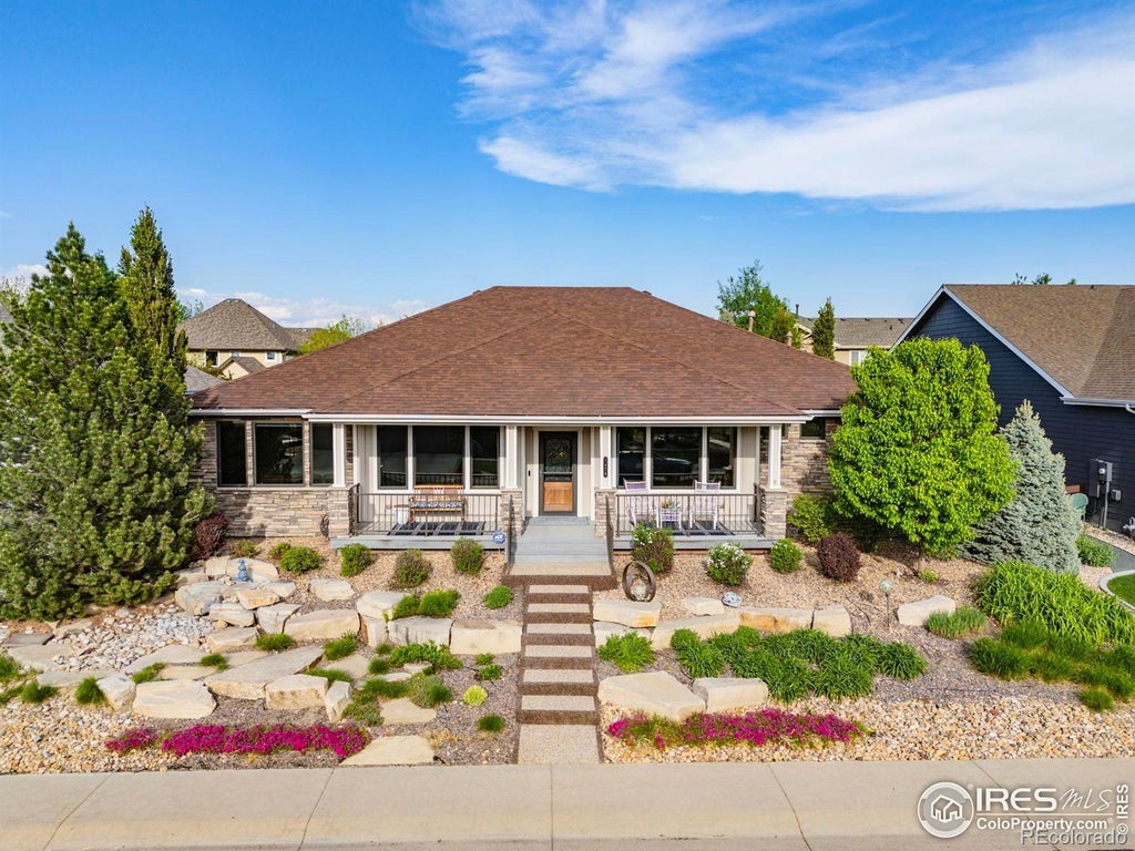 1-0 Rate Buy Down w/ Lender Incentive + BRAND NEW FURNACE! Welcome to a meticulously updated ranch-style home nestled in the sought-after Water Valley South community of Windsor, Colorado. Located just a street away from Water Valley Lake, residents enjoy water access and a plethora of recreational amenities. The Xeriscaped front yard and inviting front porch to set the tone for what lies within. Step inside to discover an open-concept layout adorned with beautiful wood flooring that flows seamlessly through the great room, formal dining area, hearth room, and gourmet kitchen. The kitchen is a chef's dream, featuring granite and quartz countertops, tiled backsplash extending to the ceiling, and newer appliances. The hearth room, with a cozy fireplace, provides a perfect spot for relaxation. The main floor luxurious primary suite has two walk-in closets, stained glass windows, and a fully remodeled bathroom. The spa-like bath includes heated floors and elegant tile work reaching the ceiling. Separate thermostats control the primary bedroom, main floor, and basement zones. The basement features a spacious rec room with a floor-to-ceiling stone fireplace, wet bar, and ample storage. Step outside to the private, 3-season patio, where a two-sided fireplace connects the indoor and outdoor living spaces, creating an ideal setting for relaxation or entertaining. The backyard is complete with a flagstone patio and water feature. Additional highlights: heated garage, blackout curtains in the primary bedroom, a whole house speaker system, a built-in vacuum system, 220V dedicated hot tub hookup, owned security system, and a home warranty! As a resident of Water Valley South, you'll have access to lakes, 27 holes of championship golf, tennis and pickleball courts, and walking trails. Nearby amenities include The Grillhouse/The Sand Bar, Hoedown Hill, and RainDance River Resort offering dining and entertainment options just a short golf cart ride away.