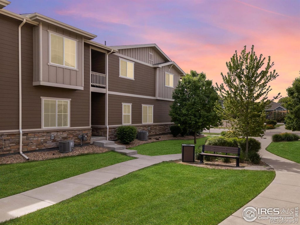 This is your chance to lock in a rare 2.75% interest rate through an assumable VA loan. Wake up to peaceful mountain views from your private west-facing balcony. Upstairs, the primary suite offers a spacious en-suite bath with double vanities, a soaking tub, and a walk-in closet that feels like its own room. The second bedroom is equally private, with its own en-suite bath and walk-in closet, perfect for guests, roommates, or a home office setup. The laundry room is also upstairs for added convenience. On the main level, natural light fills the open layout. The sleek gas range makes every meal feel gourmet, and the flow is ideal for hosting or relaxing. Tucked away from the street, you can walk out the front door to a quiet greenspace. Village at the Peaks Shopping Center is a short walk away, with Downtown, groceries, dining, and essentials within 10 minutes. Boulder is an easy commute, and Rocky Mountain National Park is under an hour for weekend hikes. The HOA covers water, sewer, trash, snow removal, exterior maintenance, plus a neighborhood playground and basketball courts. Your private, attached 2-car garage means no more scraping ice or shoveling snow just to leave the house! This is the peak of low maintenance living. Ask your agent about the assumable VA loan and current lender incentives.