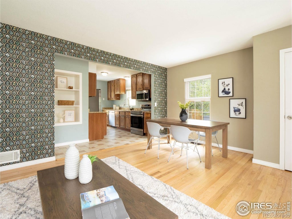 5K IN SELLER CONCESSIONS AND BRAND NEW STAINLESS APPLIANCES ALREADY INSTALLED! Sparkling real wood floors and private/spacious outdoor space, the list goes on. Your feet will find the warmth of freshly refinished wood floors that flow beneath curved ceilings-architectural poetry from an era when every detail mattered. Tasteful accent wallpaper whispers stories of timeless design, while new stainless appliances are graced with granite countertops catching the light streaming through updated dual-pane windows framed by elegant louvered shutters. Descend to discover a fully finished basement that doubles your living space-two additional bedrooms, a convenient laundry room, and a recreation area dressed in luxurious vinyl plank flooring. Here, possibilities unfold as generously as the space itself. Your private sanctuary awaits beyond the back door: a fully fenced backyard where quiet evenings gather around a fire pit under star-scattered skies. The detached garage, accessible through a peaceful alley, offers parking, storage, privacy and convenience. Adventure calls from every direction. William H. McNichols Park's fresh renovations beckon for morning walks, while Greenway Park's tennis courts and dog park promise weekend recreation. IMAGINE YOURSELF LIVING JUST 10 MINUTES from Stanley Marketplace, Oneida Park, Central Park & Rec Center, Lowry Town & Sports Complex, City Park , Denver Zoo, Fairfax Park, Quebec Center, Central Park Train Station w/direct access to Union Station and DIA! Urban sophistication just minutes away in every direction. This isn't just a home in an up-and-coming neighborhood-it's your front-row seat to Denver's exciting transformation, wrapped in the timeless charm of quality craftsmanship and modern convenience.