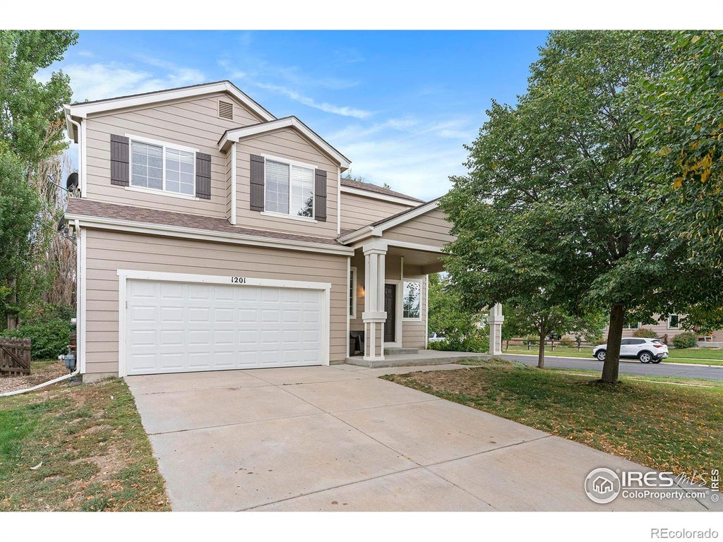 Welcome home to contemporary living in this 2-story residence nestled on a spacious corner lot with mature trees and over 2,700+ sqft of living space, this is 1201 102nd Ave. Grand two-story ceilings, beautiful hardwood floors, tons of natural light, and a neutral palette greet you upon entry. The formal living room includes a dual-sided gas fireplace to be enjoyed by the inviting family room on the other side, bringing warmth and texture to the space. Enjoy hosting guests or intimate family meals in the dining room, just steps from the upgraded kitchen featuring white cabinetry, quartz counters, a stainless steel appliance package, and a walk-in pantry. The slider in the dining space leads out to a sizeable deck with a custom pergola, the perfect spot for summer BBQs or enjoying your morning cup of coffee while overlooking a professionally landscaped backyard with mature trees and a lush lawn. Upstairs, two generously sized secondary bedrooms, a full bath, a bonus loft space, and the primary suite are located. The primary is a true sanctuary, complete with a large walk-in closet and an ensuite bathroom. Additional features of this turn-key residence include a laundry/mud room with built-in storage leading to the attached 2-car garage, newer interior and exterior paint, and an unfinished basement for future expansion or ample storage. The Promontory community is ideally situated within minutes of Windsor schools, multiple community parks, shopping, outdoor activities, and easy access to Hwy 34 and I-25. Do not hesitate to experience this stunning property; book your showing today!