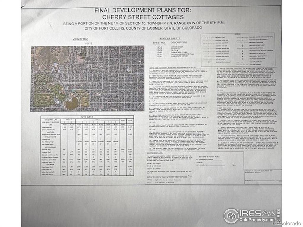Engineered Plans + Land. Project thru City of Ft. Collins tedious process, APPROVED & READY TO PULL PERMIT to start build out of this 6 Single Family Residential Lots Boutique Subdivision/Detention Pond. Opportunity for 12 Living Units (6 being over garages). Quiet Old Town neighborhood INFILL. Timing is everything. DON'T WAIT. CALL NOW. See "Documents" tab for plans. 1392,1386,1380,1374,1368,1362 Cherry St. Beautiful flat South facing lots on wide street across from Putnam Elementary playground.
