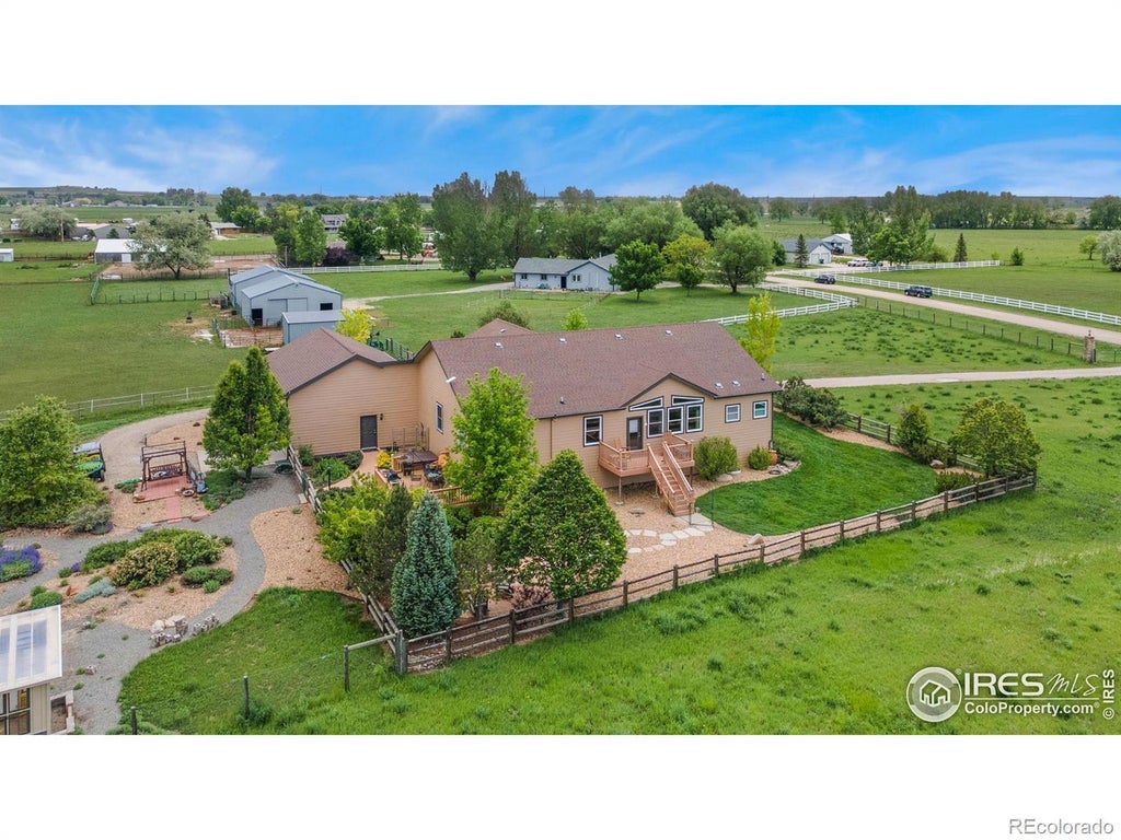 Tucked between Loveland and Berthoud, this nearly 10-acre homestead is the kind of place dreams are made of-where open skies meet mountain views and the peace of the land settles in your bones. The property comes with a prized water share from the Consolidated Home Supply Ditch and Reservoir Company-valued at $550,000-perfect for tending gardens, livestock, or a bit of both. The 3-bedroom, 2-bath home is warm and welcoming, with brand-new flooring and sunlight pouring through generous windows, giving every room a bright, airy feel. Out back, you'll find a true working setup: a solid 36x43 metal barn/garage, a classic chicken coop, milking barn, hay barn, and several lean-to shelters. There's even an old grainery standing proud-a nod to the land's history and a canvas for your next project. Three big decks offer front-row seats to quiet mornings, evening sunsets, and the rhythm of country life. Whether you're sipping coffee at sunrise or hosting a gathering under the stars, you'll feel the pull of the land. With an attached 3.5-car garage and room to grow, this property isn't just a place to live-it's a lifestyle rooted in wide open spaces, hard work, and quiet beauty. Come see it for yourself-and imagine what life could look like when you've got room to breathe.