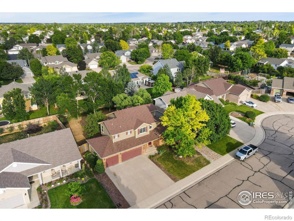 Seller is offering a $5,000 Landscaping Allowance. Tucked away on a cul-de-sac in the Kelly Farm community, this spacious two-story home offers an easy move-in experience with numerous updates throughout and a layout that just makes sense for everyday living and entertaining alike. The home has been thoughtfully maintained and features fresh interior paint and updated flooring. The open-concept main living area features dramatic high ceilings and oversized windows that flood the space with natural light. The fully renovated kitchen boasts all-new appliances, an eye-catching tiled backsplash, and generous cabinet space to keep everything organized. Just off the kitchen, the family room invites you to relax with its cozy fireplace that enhances the ambiance. As you head upstairs, you'll be treated to a unique bird's-eye view of the main level below. You'll find four bedrooms on the upper level, including a spacious primary suite with a walk-in closet and a luxurious 5-piece ensuite bathroom. The finished basement extends the living space further, offering a recreational area with a dry bar, plus an additional bed and bath for guests. A secret room under the staircase could easily become a unique wine cellar or a hidden storage. A laundry chute makes chores just a bit more convenient, feeding straight to the basement laundry area for easy access. Step out back into a massive, fenced yard, enclosed by a 6-foot privacy fence and filled with potential for outdoor fun. Relax under the shade trees, roast s'mores around the firepit area, or dine on the concrete patio, there's room here for all your favorite activities and more. Just a few blocks away from the Kelly Farm Pool and Racquet Association where residents can opt for a membership to enjoy additional amenities such as swimming and tennis. Located in West Greeley, the home sits just five miles from downtown, with easy access to UNC, the Poudre River Trail, local dining, shopping, and recreation spots.