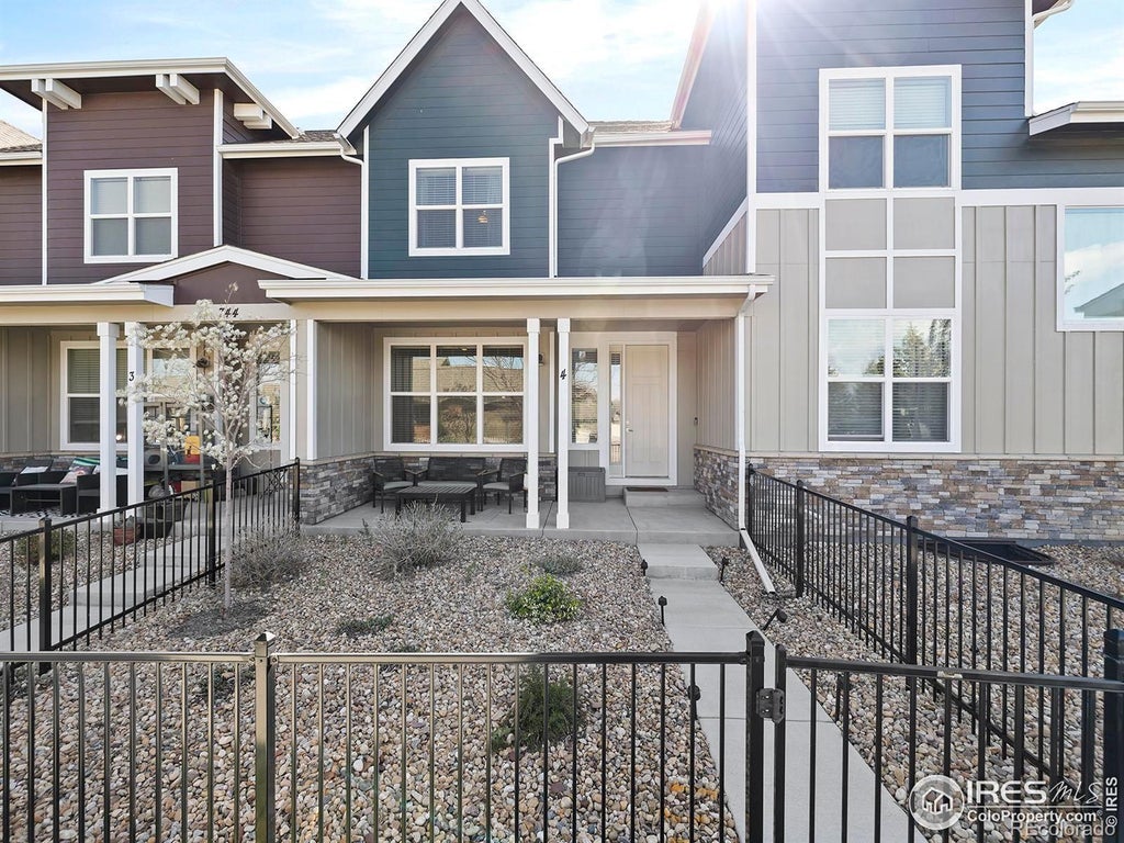 Welcome home! Practically brand-new townhome located in North Fort Collins. Before setting foot inside, you're greeted by a landscaped courtyard and covered concrete patio with unobstructed mountain views! The main floor features an open floor plan with luxury vinyl tile flooring throughout, spacious living room, eat-in kitchen with quartz countertops, subway tile backsplash, stainless steel appliances, and kitchen island. Also, on the main floor is a half bath for guests and laundry with washer and dryer. On the upper floor, you will find a spacious primary bedroom with a walk-in closet and a full primary bath with quartz counters and dual sinks. There are two additional bedrooms on the upper level with mountain views, plus another spacious full bath for guests. Energy efficient with LEED Certification! This home has been pre-inspected for your peace of mind. This home is just minutes from I-25 and Old Town Fort Collins. You won't want to miss this one!
