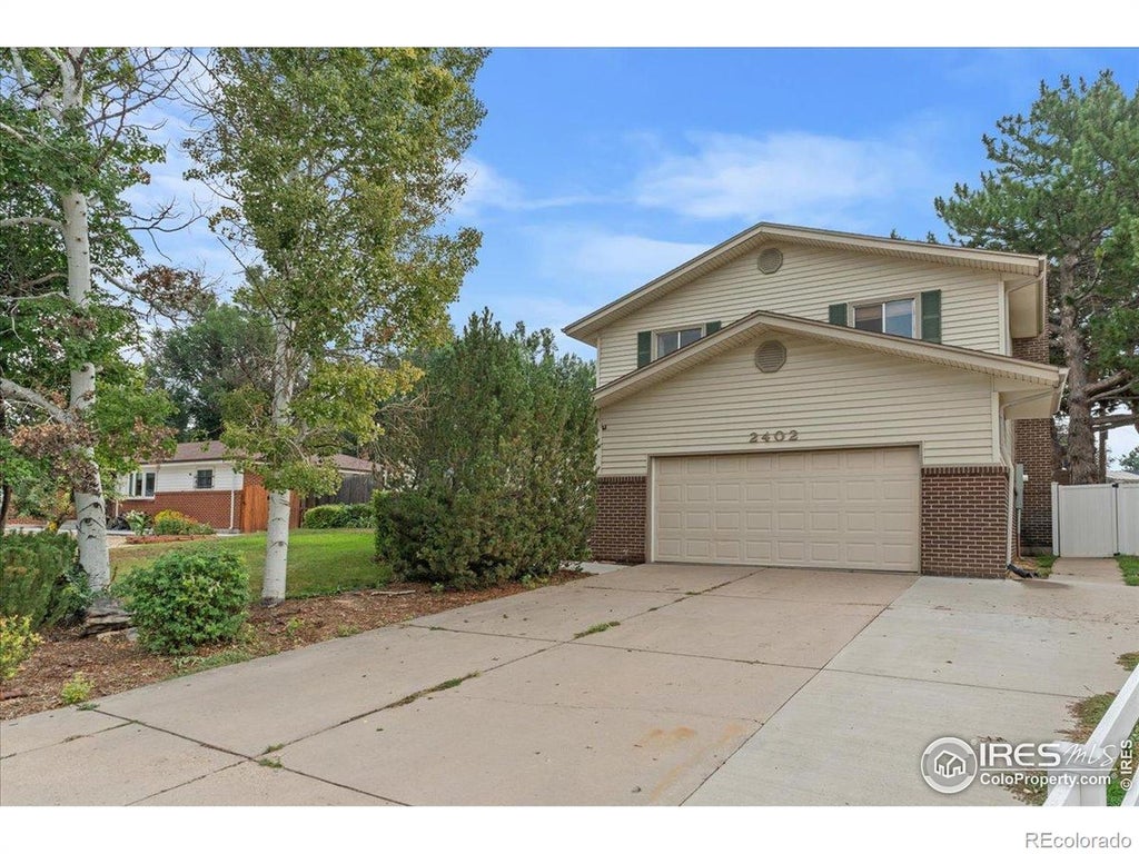Welcome to 2402 Mountair Lane - a stunning multi-level home nestled in the desirable West Lake Park subdivision! Situated on nearly 1/3 of an acre, this 5-bedroom, 3-bathroom home offers exceptional space both inside and out. Step inside to a grand front entrance that opens to an inviting, open floor plan. You'll love the bright eat-in kitchen, separate formal dining room, and multiple living spaces - including two cozy family rooms and a third versatile living area, all featuring warm, welcoming vibes with two fireplaces throughout. You will truly never run out of room! The finished basement provides extra room to spread out along with abundant storage. Outside, enjoy Colorado living on the spacious covered back patio overlooking the huge backyard - perfect for entertaining, relaxing, or play. Not to mention - no HOA! Centrally located near parks, shopping, and restaurants, with easy access to both Hwy 34 and Hwy 85, this move-in ready gem truly checks all the boxes!