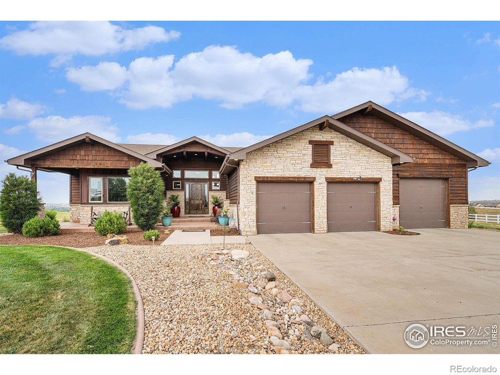 Experience this stunning rustic one-owner home. Nestled on 2-acres, this property boasts breathtaking views of Water Valley and access to all the amenities. This 5 bedroom, 5 bath home offers over 5,100 sq. ft. of finely crafted living space and is just 10 minutes from I-25, making commuting or travel a breeze. The gourmet kitchen features stainless steel Bosch appliances, a gas range, double ovens, and a granite slab island. Step outside to a beautifully designed Enjoy outdoor living area w/covered deck, built-in grill, and a sleek 5-foot linear gas fireplace. The primary suite offers a serene retreat with a spa-like bath featuring reclaimed wood accents, a sliding barn door, copper vessel sinks, and a spacious walk-in closet. The finished bsmnt includes stained concrete floors, a wet bar, a large rec room, and two additional bedrooms. Over 5,000 square ft. and a 4-car tandem garage. Located in the highly rated Weld RE-4 School District, just minutes from Grandview Elementary, Windsor Middle, and Windsor High School, this home combines timeless character with modern comfort in a location that offers both privacy and convenience.