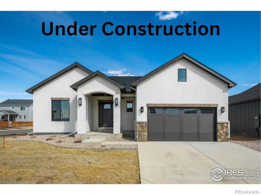 Step into effortless single-story living with the Quandary, a thoughtfully designed ranch-style home located in the highly sought-after Greenspire at Windsor Lake community. Positioned on a premium garden-level lot, this home backs to open space and offers peaceful views of the canal leading to Windsor Lake and the foothills. Blending upscale finishes with a bright, open layout, this home offers both style and comfort. Natural light fills the main level through expansive black grid windows that beautifully frame the surrounding landscape. Vaulted ceilings add to the open feel, creating an inviting and spacious atmosphere. The chef's kitchen features custom cabinetry in a warm taupe-gray, complemented by quartz countertops, a sleek range hood, stainless steel appliances, and black fixtures throughout for a cohesive, modern look. The kitchen flows into the dining area and great room, where a floor-to-ceiling stone fireplace serves as a striking focal point for both relaxing and entertaining. Step outside to enjoy Colorado's beautiful weather from the covered front porch or the spacious back patio. Enjoy scenic views of the water and foothills with the added privacy of no rear neighbors. The primary suite offers a luxurious retreat with a spa-inspired five-piece bath, including a freestanding soaking tub, walk-in shower, and dual sink vanity. A modern open railing leads to the finished basement, complete with a large recreation room, two additional bedrooms, a full bath, and a stylish wet bar. This versatile space is ideal for movie nights, hosting guests, or everyday living. Additional highlights include a professionally landscaped front yard and a location just minutes from Windsor Lake, scenic trails, and the heart of downtown Windsor. We can't wait to welcome you home to Greenspire at Windsor Lake, schedule your private tour today!