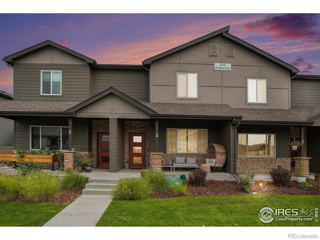 Contemporary living located in Northridge Trails community. Nearby Poudre River Trail with endless miles of paths to enjoy. Covered front porch, open layout plan with luxury vinyl plank flooring, quartz countertops, stainless steel appliances, eat-in kitchen island and walk-in pantry. 2-car garage with direct kitchen access and 1/2 bath on main level. Upstairs, primary bedroom with private bath & large walk-in closet. Two additional bedrooms with shared full bath and separate laundry room, clothes washer & dryer included. Close to schools, stores and golf course.