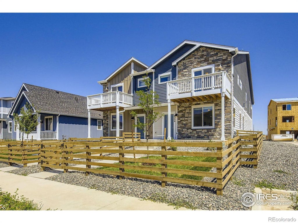 Introducing 2354 Walbridge Rd, a stunning paired home where modern design meets everyday convenience. Inside, the open great room with a cozy fireplace flows into the dining area and a chef-inspired kitchen. The kitchen features a sleek slide-in gas range with vented hood, white soft-close cabinetry with matte black hardware, granite countertops, and durable LVP flooring-perfect for daily living or entertaining. Upstairs, the primary suite offers a private balcony with Foothill views, walk-in closet, and full bath. Two additional bedrooms with walk-ins, a versatile loft, and a convenient laundry room complete the level. Outside, enjoy a professionally landscaped front yard with an enclosed fence. HOA covers non-potable water and lawn care, making maintenance simple. Located in Waterfield, a vibrant community with future open-space trails, BBQ area, park, and dog park. Just minutes from CSU and Old Town Fort Collins, you'll have easy access to great dining, shopping, and entertainment. With a reasonably priced HOA and no metro district tax, this home is an exceptional value in one of Fort Collins' fastest-growing neighborhoods.