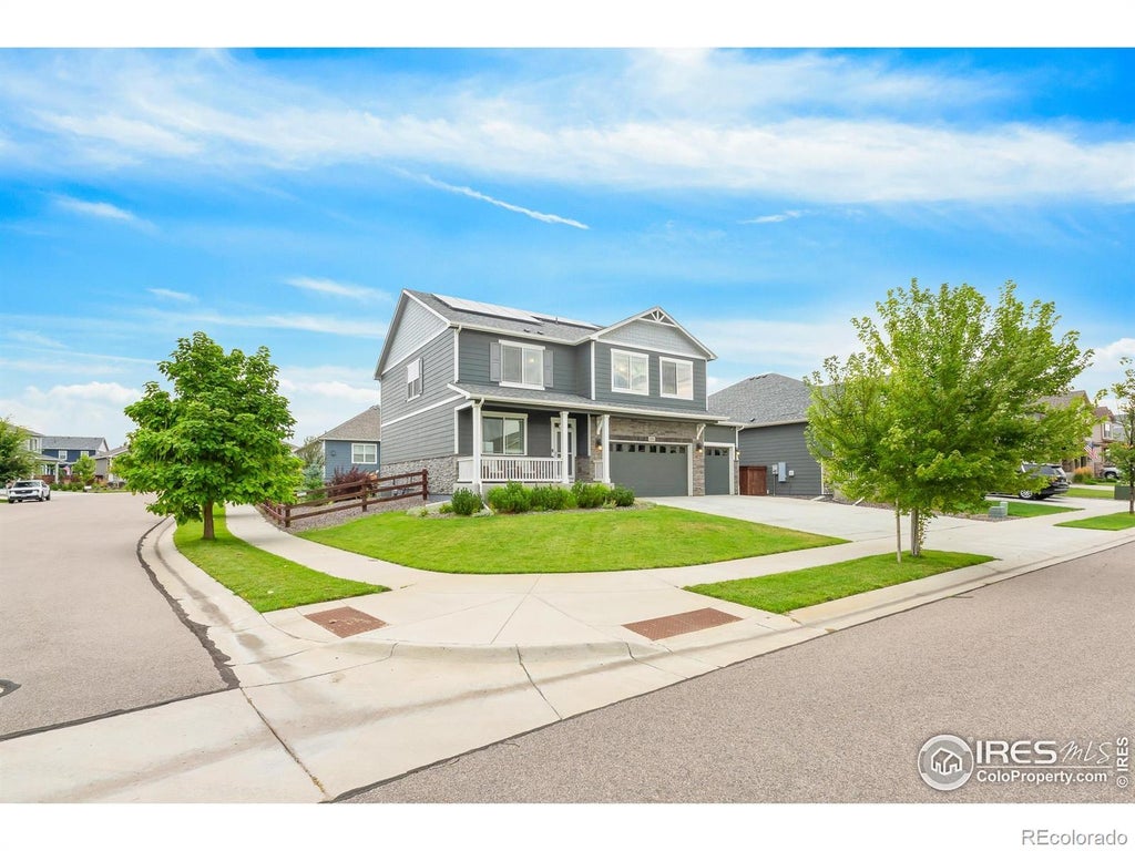 1% Seller Concession offered PLUS Mountain Views, Park w/ Open Space & Owned Solar System! Stunning 2-story on corner-lot in the heart of Windsor's sought-after Raindance community. Enjoy mountain views from the covered front porch and a bright, open floorplan. Beautiful wood floors, a cozy gas fireplace, and abundant natural light set the tone for the main level, which includes a private office (could be 5th bed) and a gourmet kitchen featuring a gas range, huge walk-in pantry, and plenty of space for cooking and entertaining. Upstairs, you'll find 4 spacious bedrooms, including a serene primary suite w/ mountain views and dual walk-in closets, plus a versatile loft perfect for a secondary living area or rec space. With 3 baths, a 3-car garage, and an unfinished basement ready for your vision, this home checks all the boxes. Owned solar panels help keep energy costs low, while the backyard offers an extended concrete patio ideal for gatherings. Living in Raindance means more than just a home-it's a lifestyle. Enjoy community gardens and orchards, trails, parks, pickleball courts, the Raindance River Resort waterpark, local restaurants, and the Raindance National Golf Club-all just a short walk, bike, or golf cart ride away.
