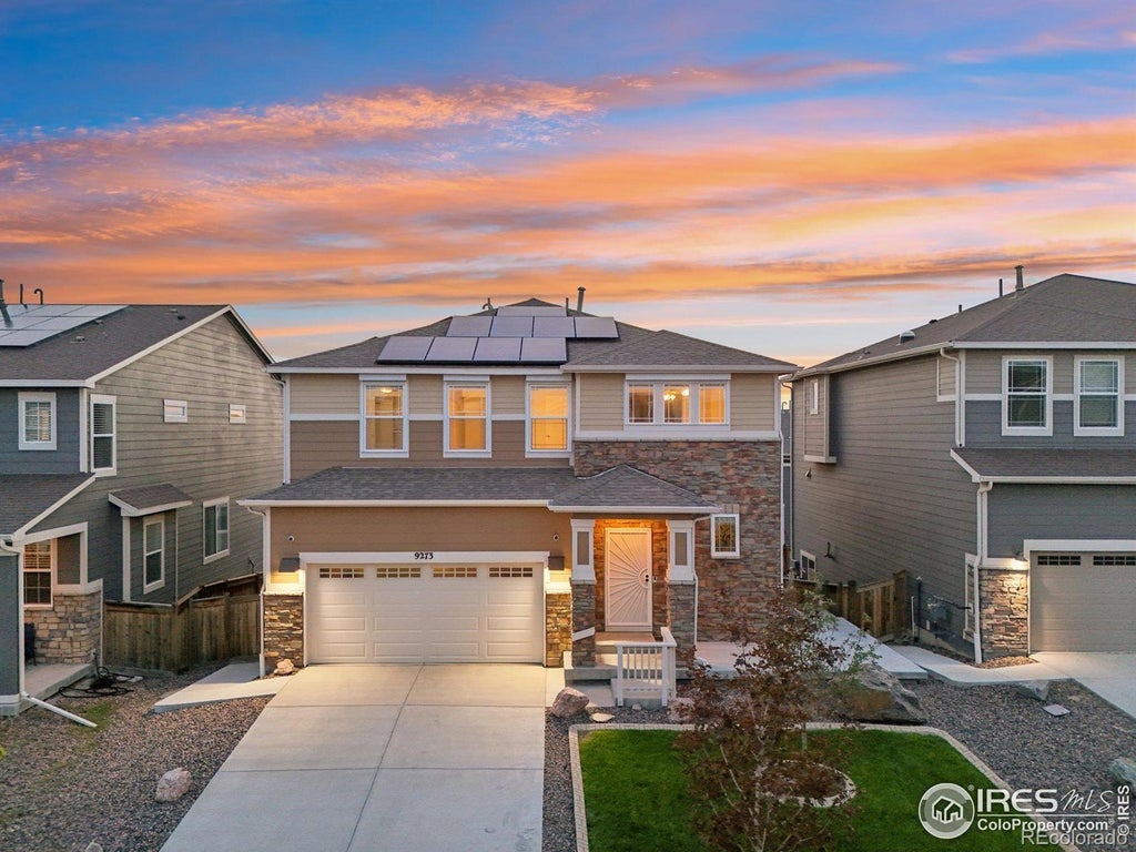 Stunner in Buffalo Highlands! This delightful two story home with a finished basement has been extensively upgraded for the new owner! The main level features a gourmet kitchen with stainless appliances, granite counters, stylish cabinets, large island with ample seating, bullnose corners, separate dining space, great room and patio with views ideal for entertaining. The upper level floor plan is perfect with its large primary suite with mountain views, a spa-like shower and walk in custom closet. Additionally there are 2 more bedrooms upstairs plus a 5 piece full hallway bathroom, loft and office space that is bright and cheery. The finished (and permitted) garden level basement was fully permitted and offers an additional bright and open flex space complete with TV, gorgeous electric fireplace, microwave and fridge. Extensive updates include: fully PAID solar with battery backup, owned security system, solar tube lighting, retractable awning, fully landscaped backyard, gardens, extra trees/shrubs for privacy, tankless water heater and softener, sump pump, additional concrete walkway/patio, decorative stone window well covers, new garage door and opener with its own camera. Inside the home you will appreciate the quality plantation shutters, bullnose corners, custom blinds throughout, some new windows, additional ceiling fans, custom tile work, custom closet systems and more. Enjoy easy access to DIA, Rocky Mountain Wildlife Preserve, downtown Denver & Brighton Crossing. Up and coming with new dining, shopping & entertainment options coming as well as a new neighborhood school and multiple community events throughout the year. Make this beautiful home yours today!