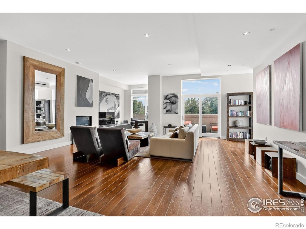 Experience Luxury Living in the Heart of Downtown Boulder. Step into one of Boulder's most sought-after residences, just steps from the Pearl Street Mall. This top-floor, one-level condo combines elegance, convenience, and breathtaking views in a private, quiet setting. The intelligently designed floor plan features soaring ceilings, rich wood flooring, and a cozy gas fireplace in the great room. The gourmet kitchen is equipped with top-of-the-line appliances, quartz counters, a breakfast bar, and modern finishes. The spacious primary suite boasts a large walk-in closet and a spa-inspired five-piece bath with a soaking tub. Enjoy the best of Colorado living from two private terraces-one overlooking Walnut Street with stunning Flatiron views and southern exposure, the other facing the serene atrium filled with natural light. Added luxuries include underground parking, extra storage, and an ECO Pass provided by the HOA. Offering sophistication, comfort, and an unbeatable location adjacent to the Pearl Street Mall, this is downtown living at its finest.