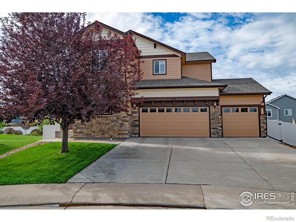 You won't want to miss the opportunity to see this beautiful 5 BR, 4 BA, 2 story. This home features main floor with open floor plan for entertaining. Newer LVP, Gourmet kitchen boasts granite, gas stove w/double oven & pantry. Separate dining & main floor office. Upper level has 3 spacious BRs, main bath w/ separate shower, laundry, Large primary suite w/ sitting area, double sided fireplace, 5 pc bath & walk in closet. Basement is finished with BR, BA, rec room, bar area & storage. Four car tandem garage, fully fenced lot, on a cul-de-sac. Whole house water filter system. New paint on exterior. Take advantage of the solar panels that are paid for. Close to schools, parks and downtown area. This beauty will not disappoint.