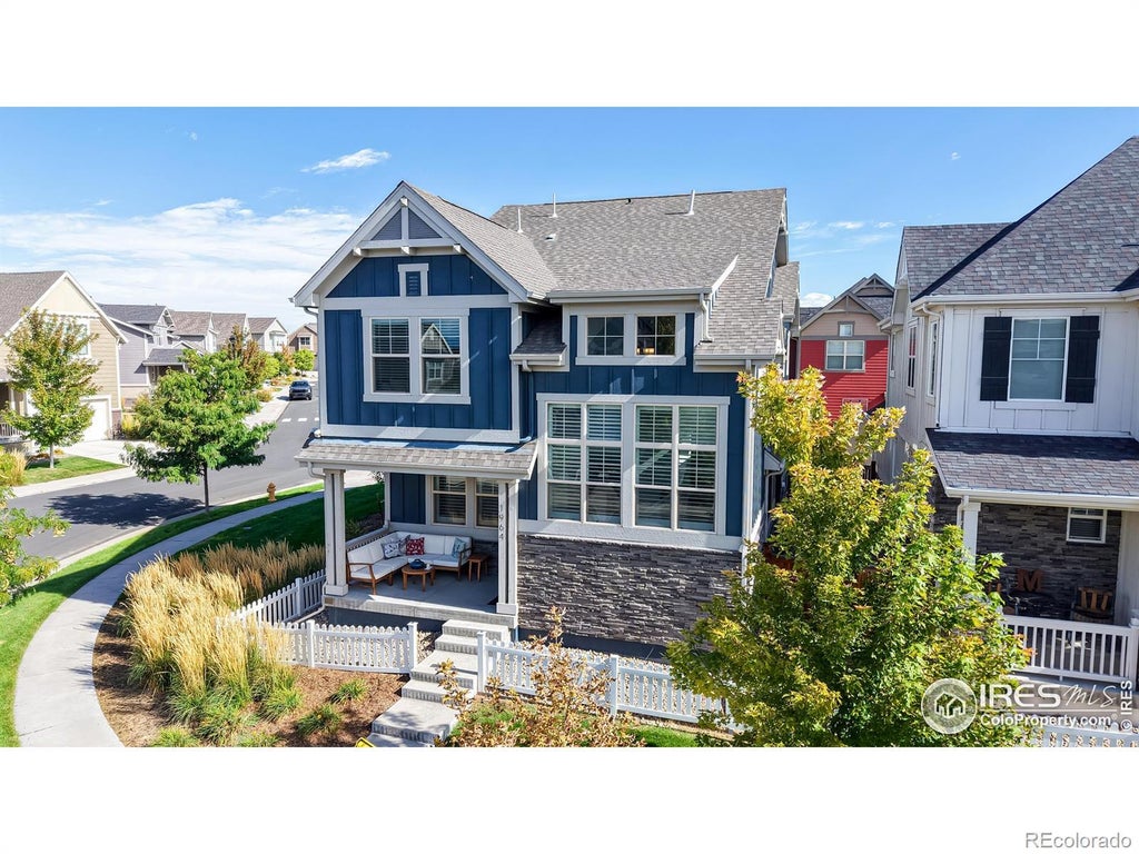 Welcome to this stunning home in Broomfield offering a thoughtful layout, stylish finishes, and versatile living spaces. Upon entering, you're greeted by soaring ceilings and dramatic floor-to-ceiling windows with shutters that fill the home with natural light. The family room features hardwood floors and a gas fireplace with tile surround, flowing seamlessly into the kitchen with stone counters, subway tile backsplash, a large island, and ample cabinetry. A formal dining room/study with a charming barn door and a convenient drop zone off the oversized 2-car garage enhances functionality. Upstairs, a loft provides flexible space for work or play. The spacious primary suite boasts vaulted ceilings, a cozy seating area, and a luxurious 5-piece ensuite bathroom with dual vanities, a large soaking tub, a walk-in shower, and a generous walk-in closet. Two additional guest bedrooms, two bathrooms, and a laundry room complete the upper level. The finished basement expands the living options with a large flex space, a private gym with a barn door, a bedroom, a bathroom, and a storage room. Enjoy outdoor living with a covered front porch and fenced yard, plus a covered side patio and fenced side yard-perfect for entertaining or relaxing. Great neighborhood with walking trails, lake access, pool, and clubhouse. Easy access to Denver, Boulder, and DIA. Hurry, this charming home could be yours!