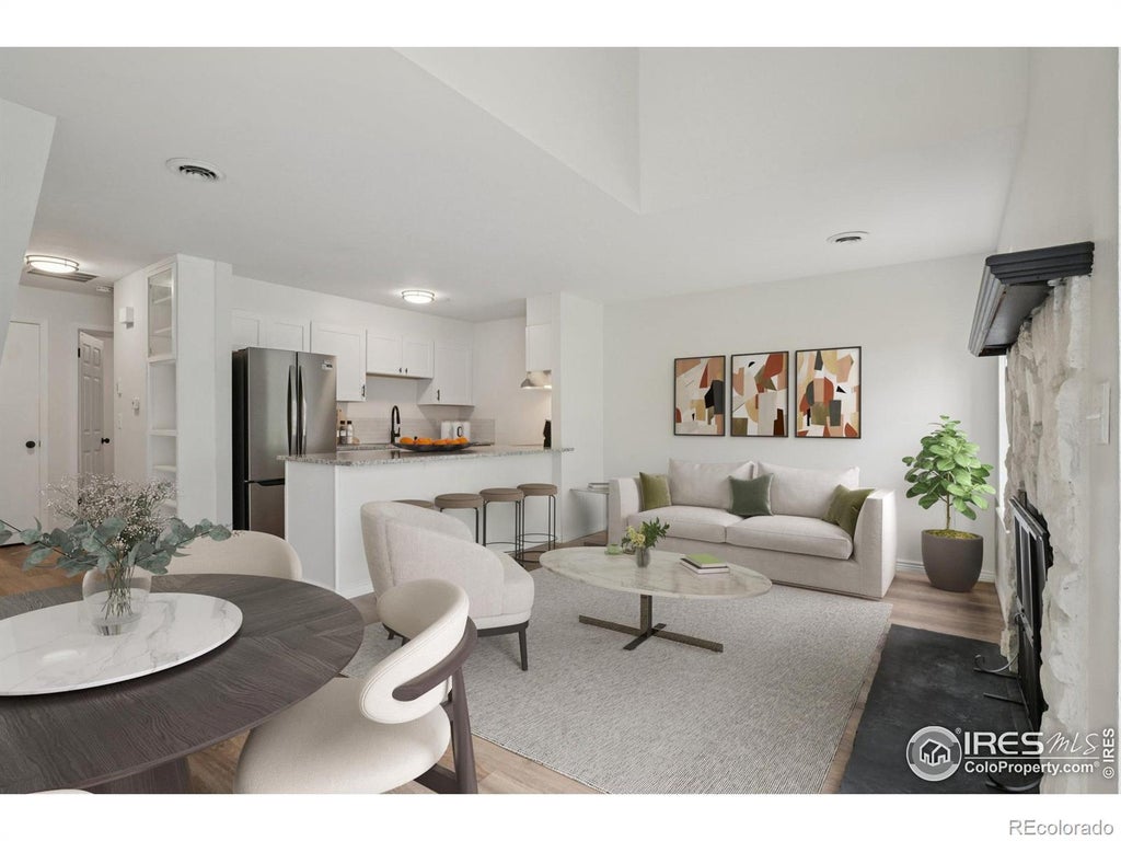 Welcome to this inviting, move-in-ready townhome in the desirable Sunnyvale Condos community. Recently refreshed with brand new flooring throughout and a fully renovated kitchen with granite countertops, this home blends comfort, function, and a touch of sophistication. The open-concept layout is anchored by soaring vaulted ceilings and a cozy wood-burning fireplace, creating a warm, welcoming space that's ideal for both relaxing and entertaining. Upstairs, a versatile loft area offers flexibility for a home office, guest room, or second living space. You'll also find a beautifully updated 3/4 bathroom, generous closet storage, and a convenient laundry room complete with a new washer and dryer. Thoughtful design and smart storage solutions make every square foot count. Residents enjoy access to a seasonal community pool, reserved parking, and well-maintained common areas. Ideally located just minutes from downtown Longmont, shopping, trails, and commuter routes, this townhome delivers both lifestyle and location in equal measure.If you're seeking low-maintenance living with modern updates and everyday convenience, this gem is a must-see.